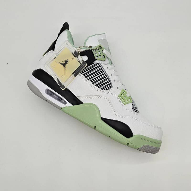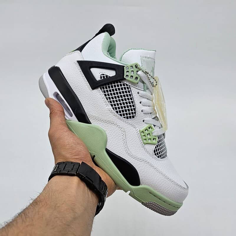 کفش Air Jordan 4 Retro مدل Seafoam با طراحی کلاسیک از مجموعه نمادین Air Jordan، یکی از مدلهای پرطرفدار محسوب میشود. این مدل با کد AQ9129-103 دارای طراحی شیک با رنگ سفید تمیز و جزئیات سبز پاستلی Seafoam (همچنین به آن “Oil Green” نیز گفته میشود) است که ظاهری خاص، مدرن و قابلتطبیق با استایلهای مختلف ارائه میدهد.