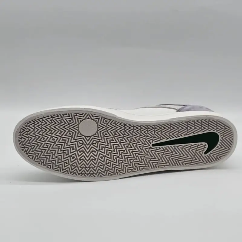 زیره لاستیکی مقاوم که ترکیبی از الگوهای herringbone و الگوی دایروی Air Force 1 داره برای چسبندگی بیشتر و کنترل حرکت در انواع سطوح.