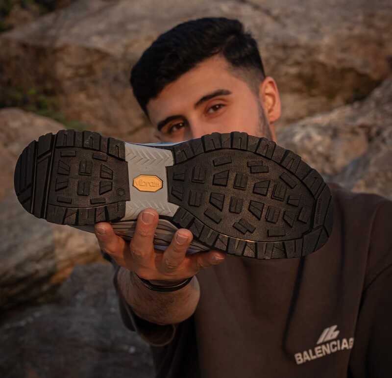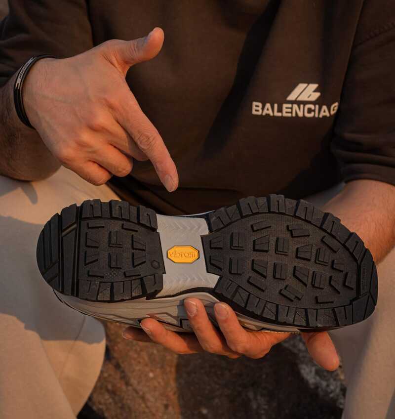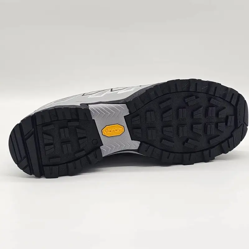 زیره ویبرام با طراحی لِگ‌های چند جهته برای چسبندگی عالی در مسیر خاکی، سنگی، مرطوب و سطوح فنی.